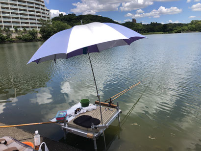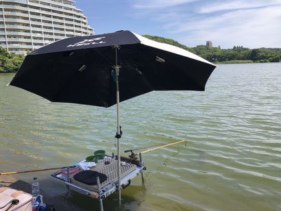 この釣りを始めたころ、パラソル無しで初夏を過ごした時期はマジ、サウナどころじゃねえ、汗が出なくなる状態にあっという間になってしまうほど体がヒートアップして洒落にならないということで、早々にパラソルを導入しました。
